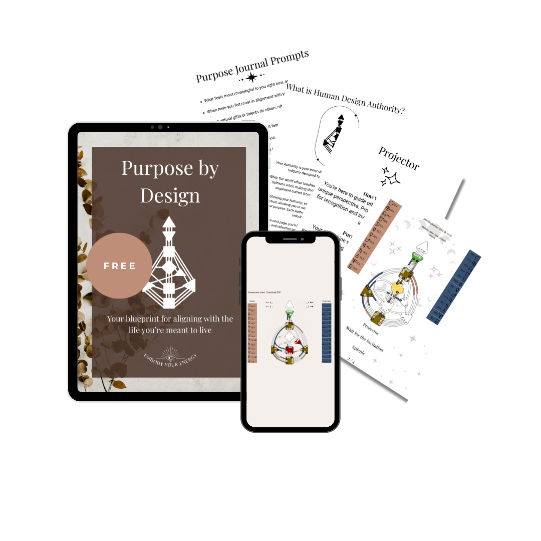 Download your free Human Design energy blueprint. Learn what makes you so unique, how to make aligned decisions that feel good, and how to improve your relationships. Plus get our free Purpose by Design ebook!